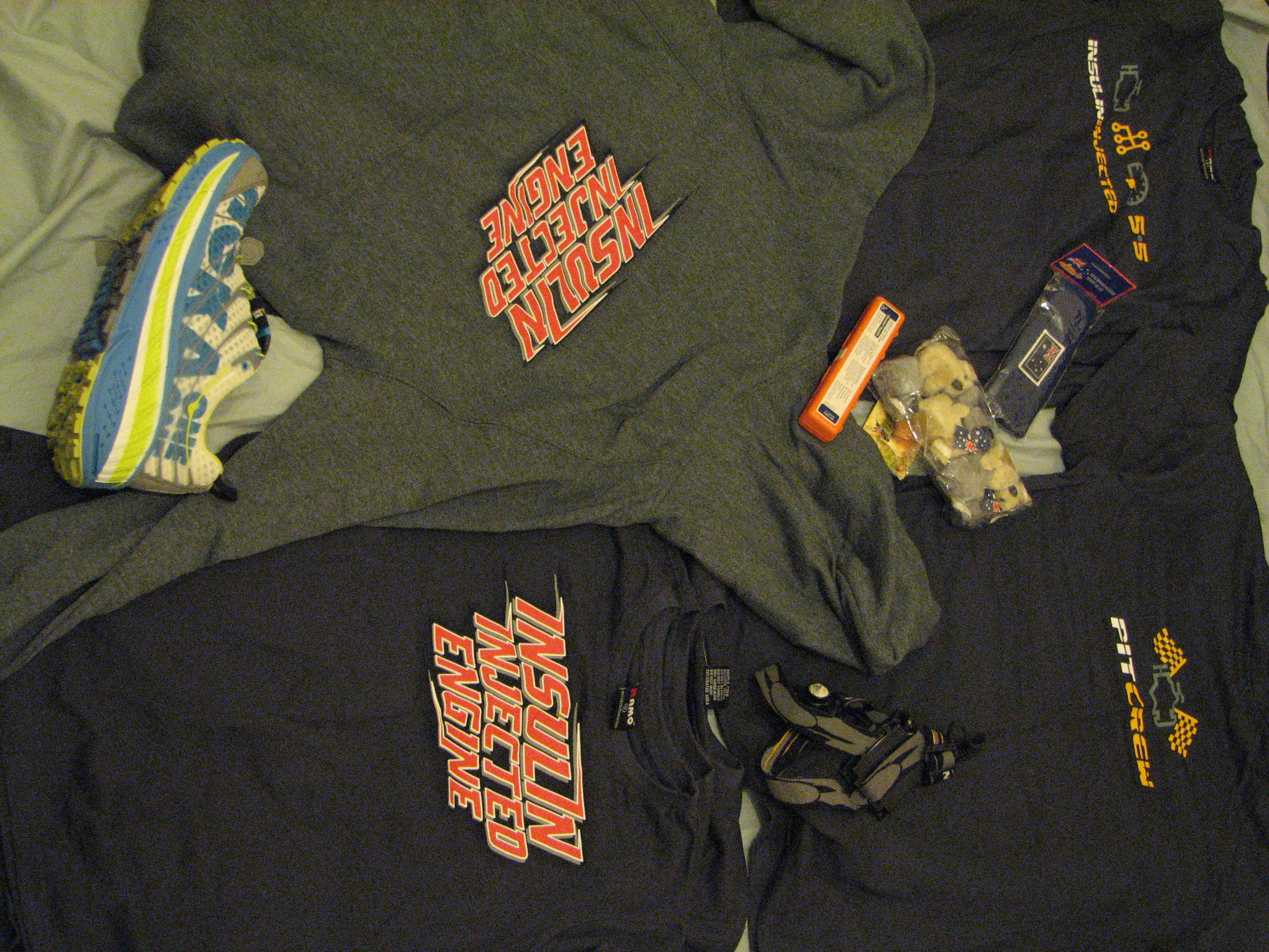 And now I’ve just opened 4 parcels from Monique at HypoActive and she’s not only sent me a bunch of awesome shirts for diabetic kids and supporters and event organisers, but she’s put in a really sweet note for me and a wicked hoodie to keep warm in Moab, Utah, where I’ll be running a short ultra in about 11 days, the weekend after the Twin Cities Marathon.