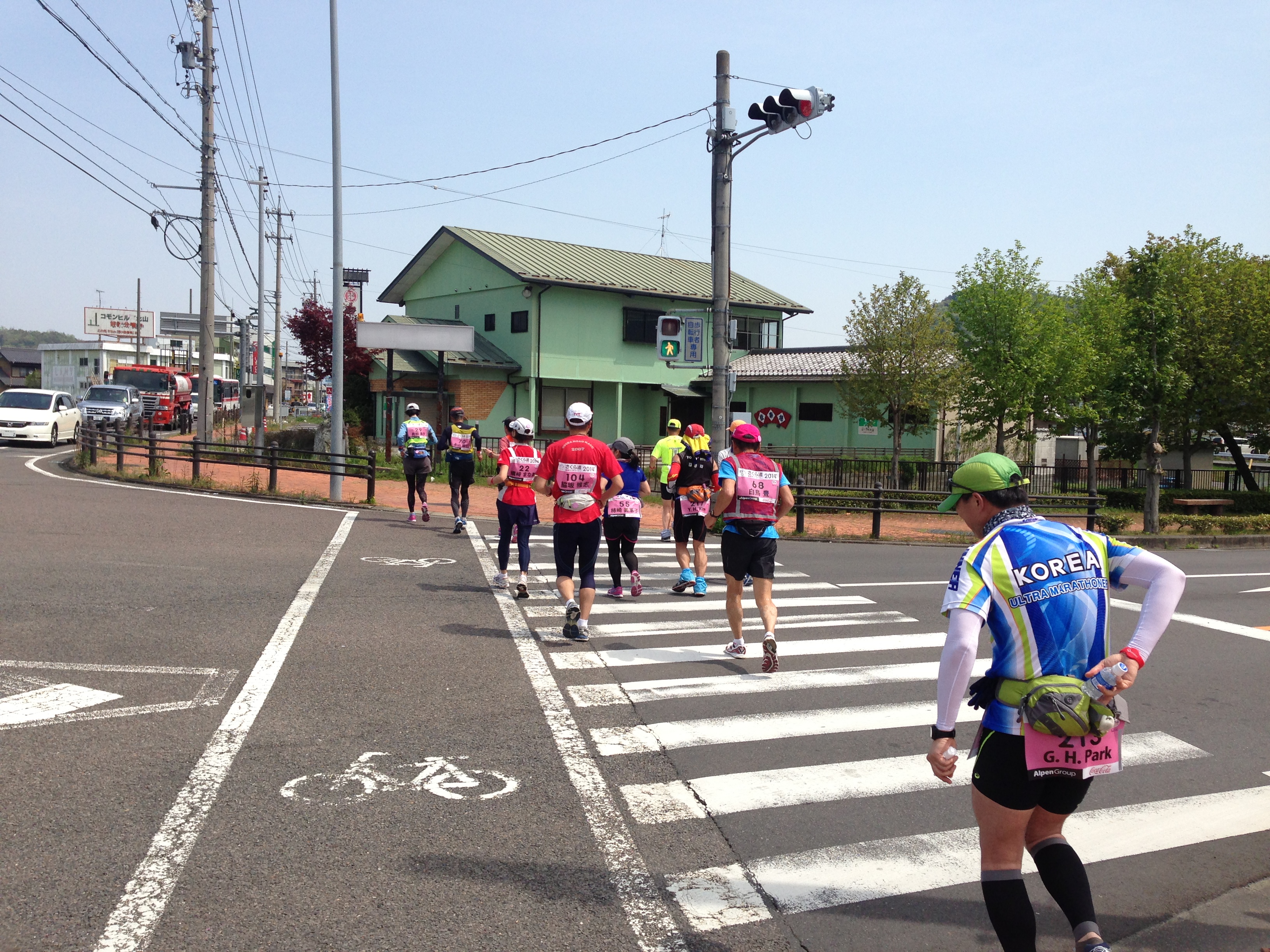 The run out of town was exciting but relatively uneventful. The first aid stations would be roughly 10km apart and then get closer together once we hit the open countryside of Japan. Pedestrian crossings were funny. Our friends Tomotaka and Miho were amazing. A beautiful couple, we met Tomo through the Sahara Race when we took on the 4 Deserts Grand Slam in 2012.