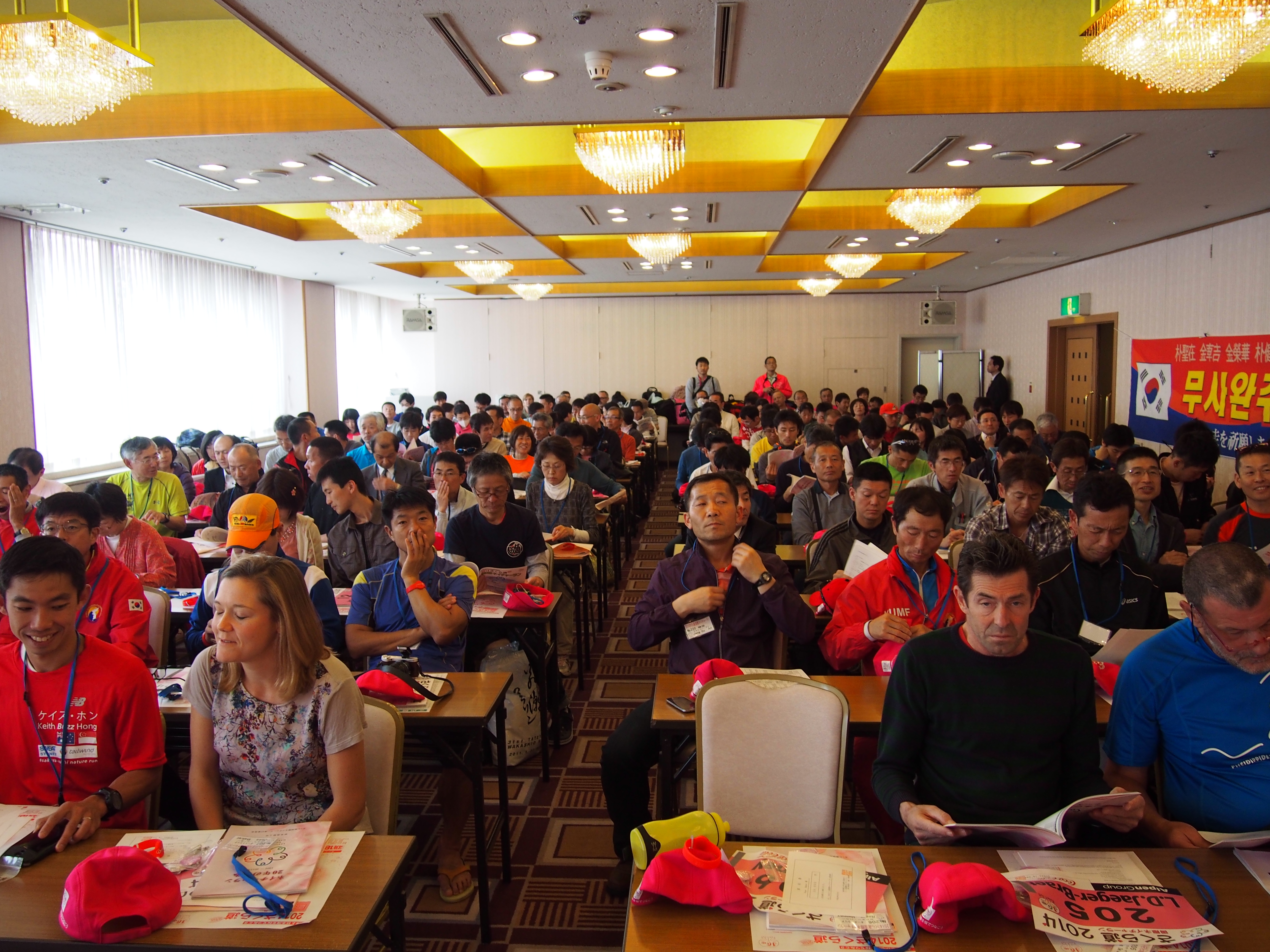 The pre-race briefing for the international runners had already been conducted as most of the main briefing would be in Japanese with translators helping out. A highlight though was certainly the surprise request relayed by phone shortly before the meeting for Jess to speak on behalf of all visiting runners. Opposite the castle and several floors above where the briefing would take place, Jess’ thrill at preparing an unprepared speech filled our room and for the next 40 minutes we entirely forgot the pre-race anxiety that still had some hours left to brew.