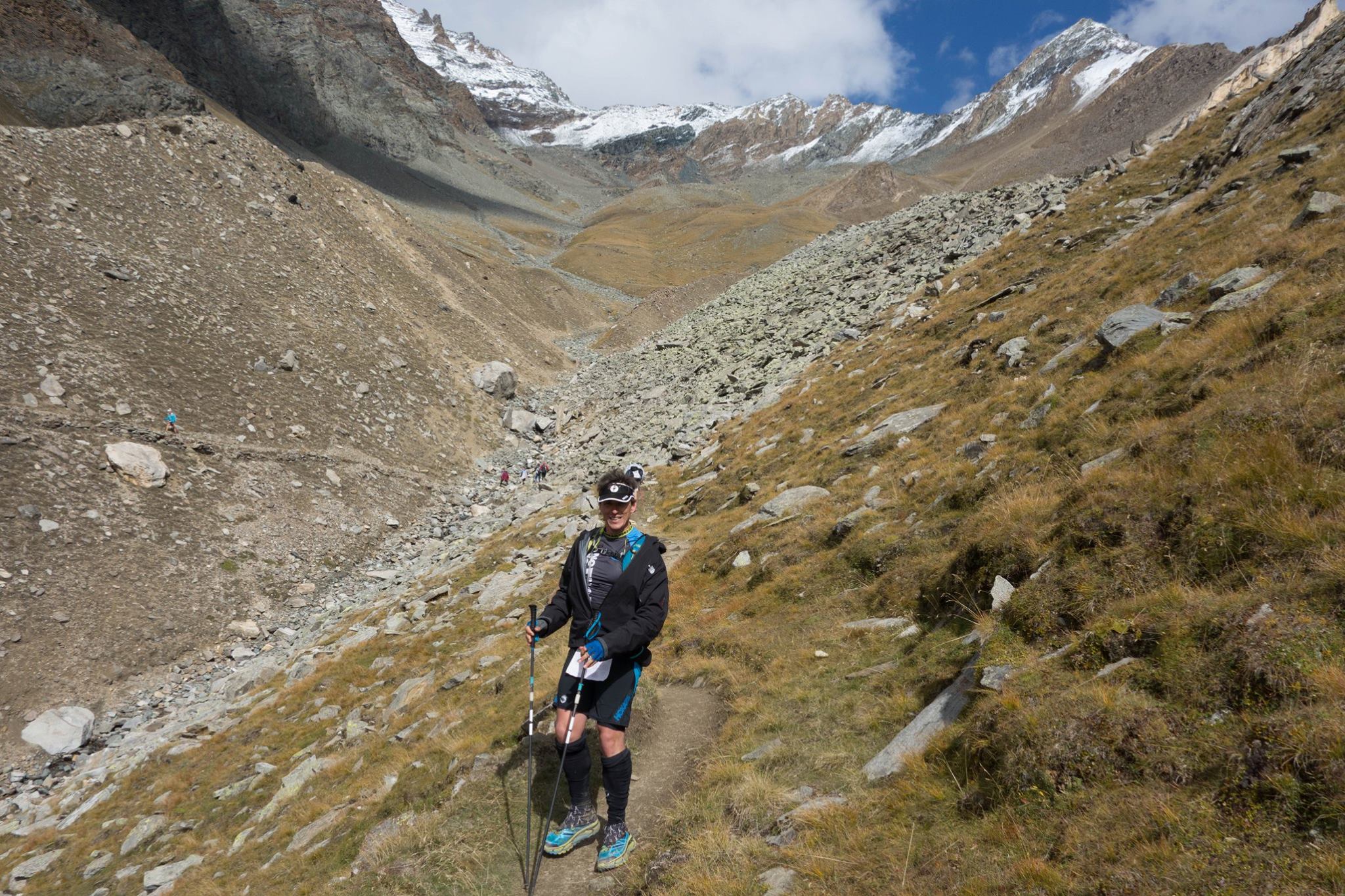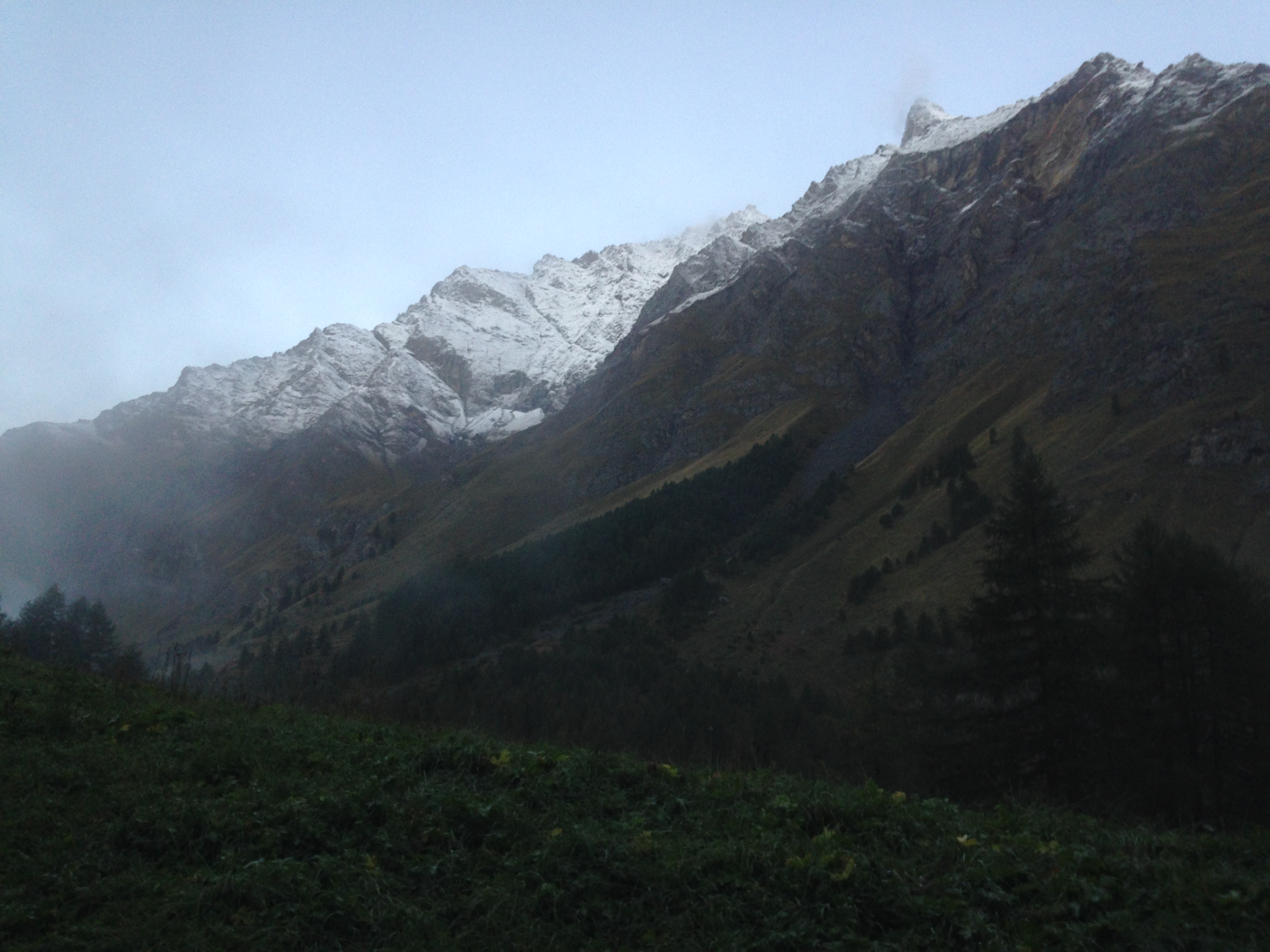Sending some quick messages back to friends in Australia, I said that we were starting a climb with 900 metres of ice likely at the top. Boy was that the wrong call. Heading up and away from the town, the trail took us past mountain homesteads and into an unpopulated valley, ringed again by epic mountainsides and divided by a gorgeous river. My friend Jill, Beat’s partner, was coming back the other way and stopped to say hey and let me know how he and the race generally were going. When she asked how I was going I pretty much gave her a poo report before moving on. Having the benefit of reflecting on this exchange I reminded myself to focus on all the things that were going right, lest I dig myself an ultra moodhole. Sage advice.