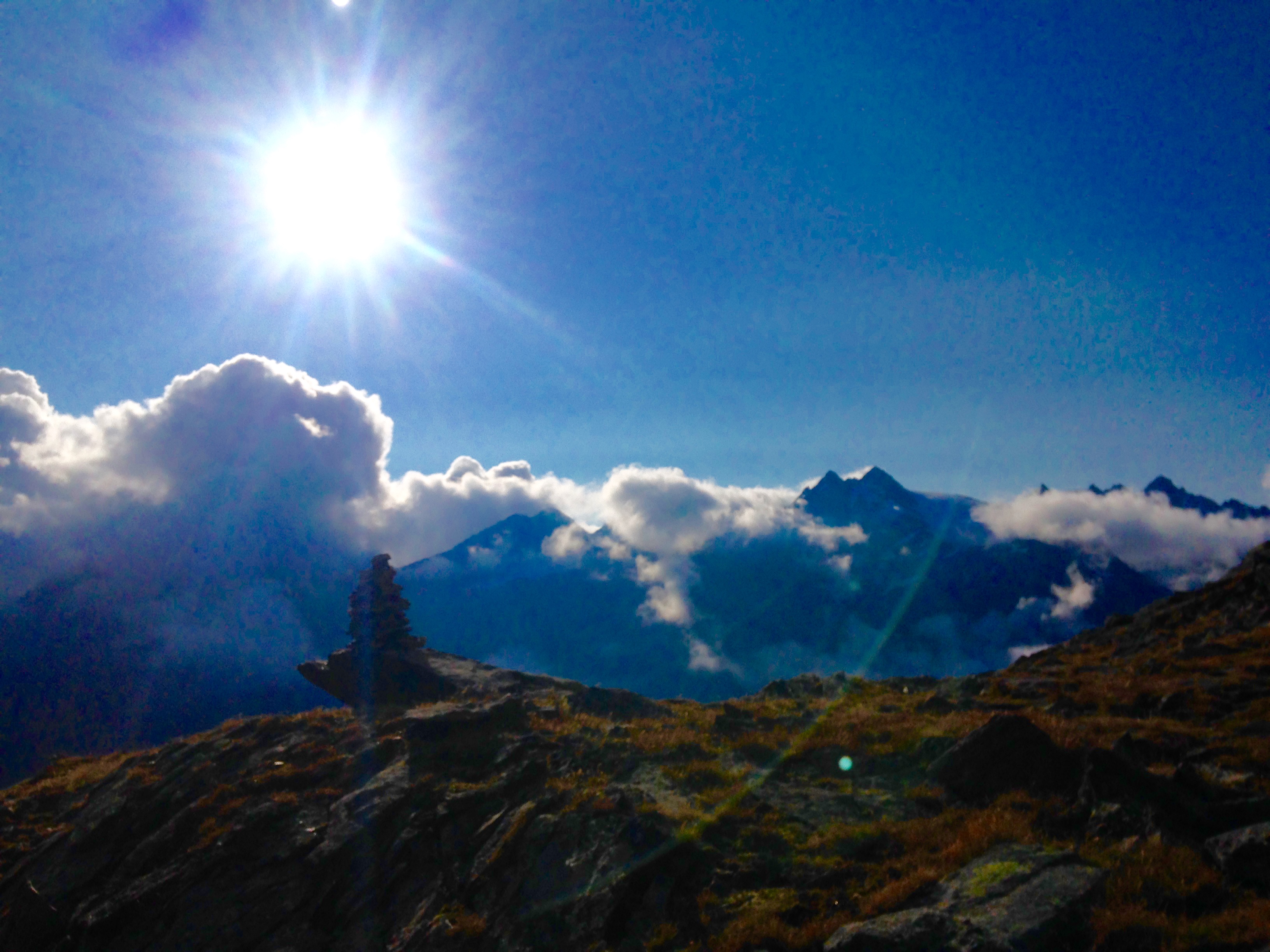 It seemed fair enough. Fatigued runners of mixed experience, some only with feeble ultralight kit, heading to a high pass with thin air, steep drop-offs, and potentially icy and windy conditions – being smart wasn’t high on our list of priorities. After a bit more climbing I purged myself once more – unfortunately, I think, into a marmot hole – and suited up with waterproof pants and heavy jacket, ready for an alpine onslaught.